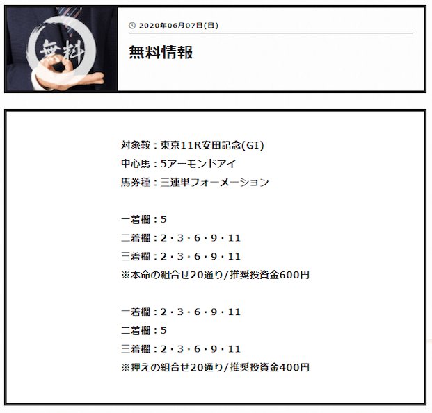 無料予想は受け取るだけならノーリスク。ぜひ、一度受け取ってその実力を体感してください。