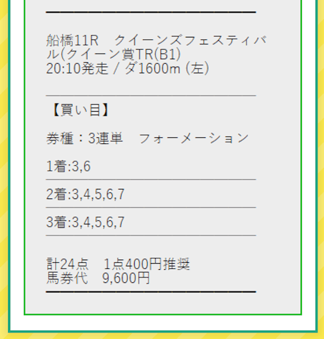 - 船橋 11R条件戦クイーンズフェスティバル(クイーン賞TR(B1)的中