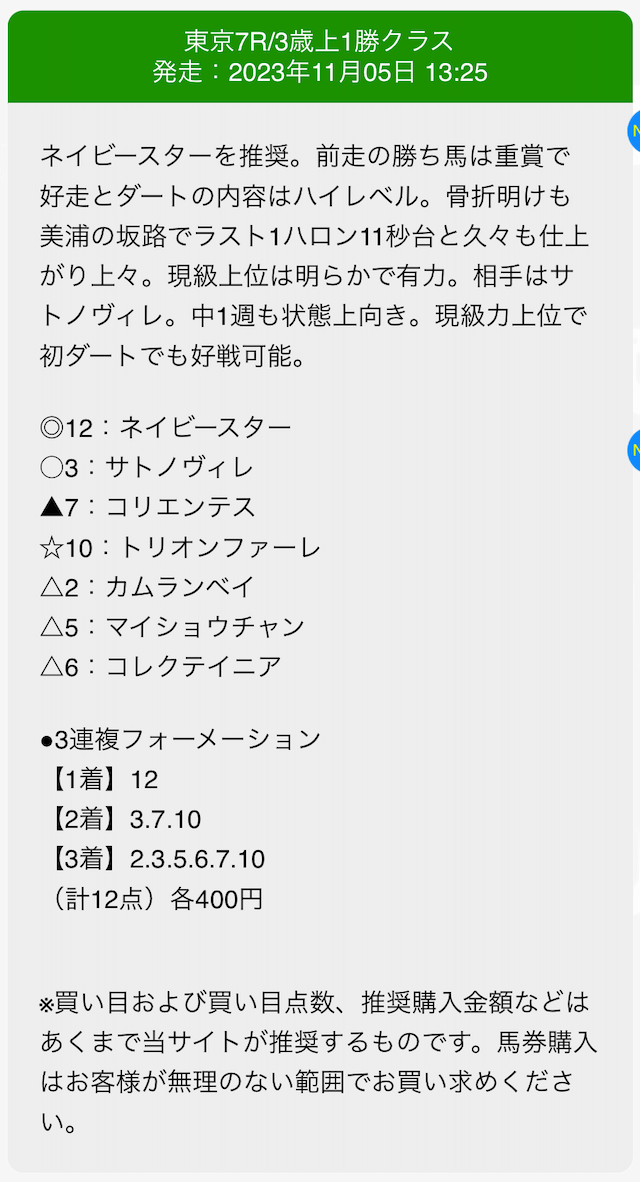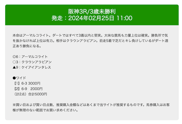 もちろん、情報料金を払っているので、万が一外れたらリスクであることは言うまでもありません。