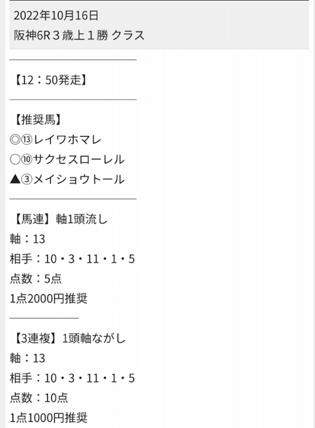 券種的に難しい方だと思うのに、的中率すごい高いから無料でも手を抜かないってスタイルが好感もてました!