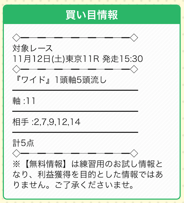 また、有料予想では堅実的な無料予想とは異なり配当重視の狙い方。
